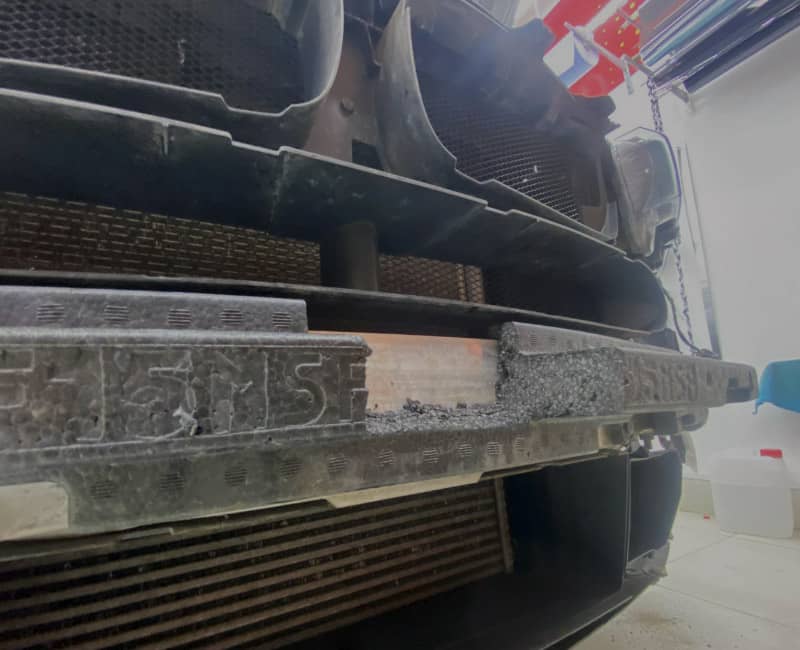 Рамка жестко зафиксирована и ее невозможно отогнуть рукой. Стоит редуктор. Рамка плотно прилегает к бамперу и ничем не отличается от стандартной.