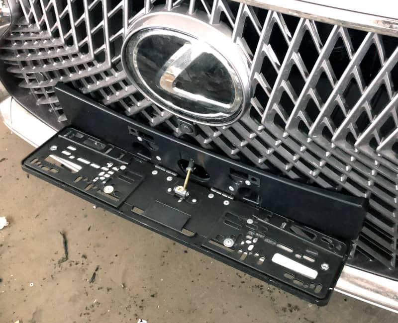 С помощью пульта дистанционного управления или кнопки в салоне откидная рамка с номером мгновенно откидывается на 90 градусов вниз.